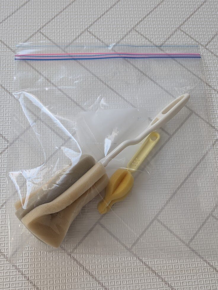 家から哺乳瓶用のスポンジを持っていきました。