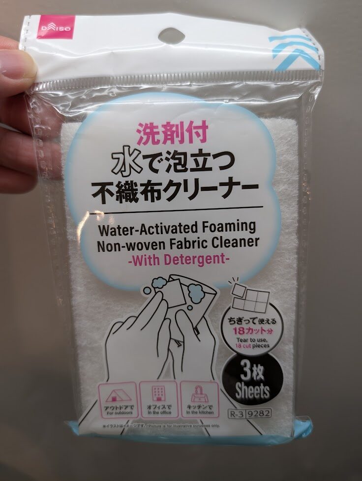 SNSで見たダイソーの洗剤つきスポンジを家で試してみましたが、私はうまく洗えなかったのでやめました。1泊くらいならありかも。