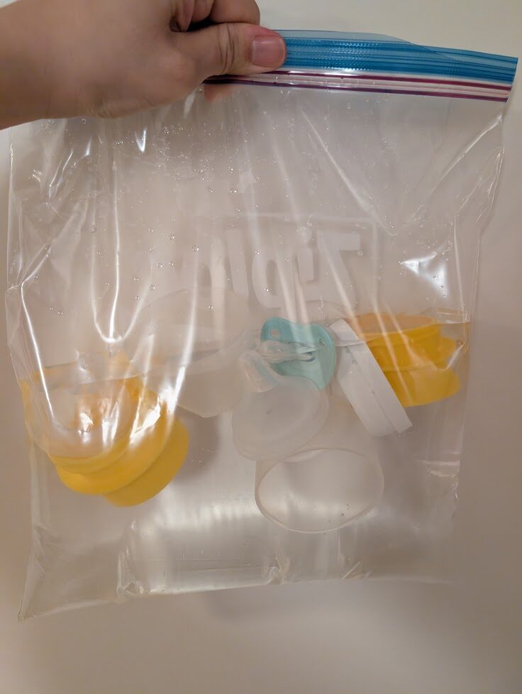 消毒はジップロックにミルトンを入れて浸け置き消毒。荷物と手間にはなりますが長旅&1日何回もある授乳なので使い慣れている物を持っていって正解でした。