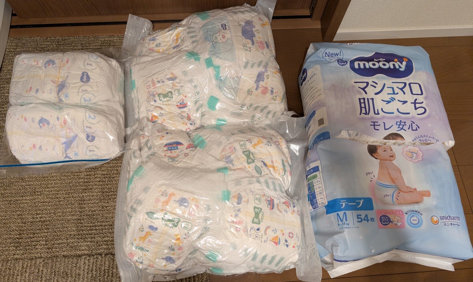 おむつはかなり多めに持っていきました。トラブルで延泊したり、途中で足りなくなって1袋買うことになったら超荷物になるので。