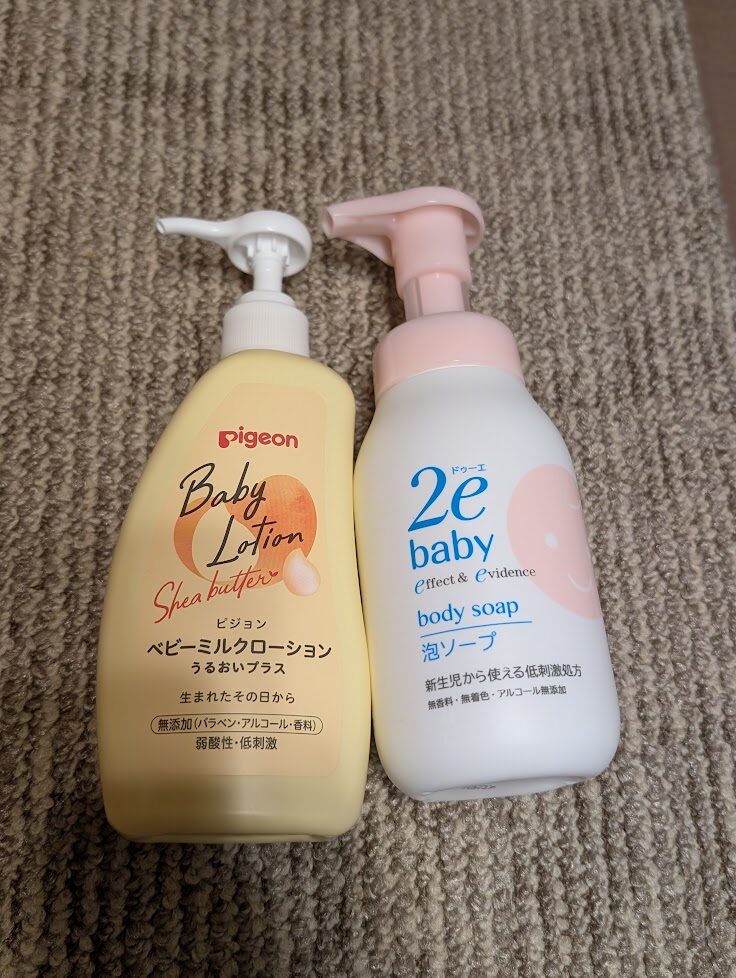 赤ちゃん用の石けんとボディクリームは家から使い慣れているものを持っていきました。
