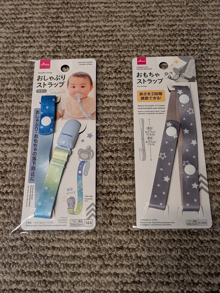おしゃぶり普段は使ってませんが、飛行機の気圧対策、泣きグズり対策に持っていきました。まぁまぁ効果ありました。100均のホルダーが便利でした。