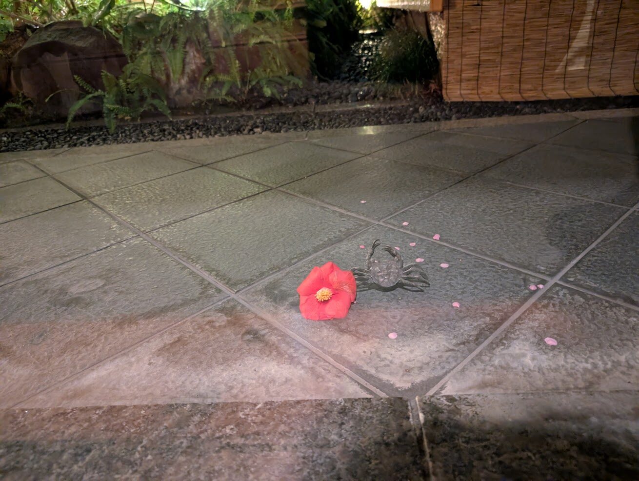 カニ。この日はお花と花びらが置かれていて可愛らしかったです。